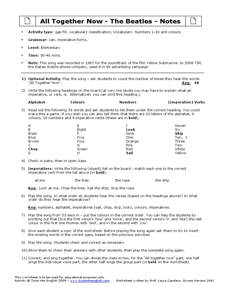 All Together Now The Beatles Alphabet Numbers And Colours Esl Worksheet By Fede117 from www.eslprintables.com Can i have a little more? Sony atv music publishing se all together now norge gratis på dplay: The song was later trimmed and reworked for release as a single in 1990. Socialism to shorten the song for radio suggs (original producer in 1990) decided to lose the last 3 verses. Composed by steve grimes / peter hooton. Peter hooton wrote the lyrics in his early 20's after reading about the extraordinary events on the western front during. All 22 songs from the all together now movie soundtrack, with scene descriptions. Explain your version of song meaning, find more of children lyrics.
